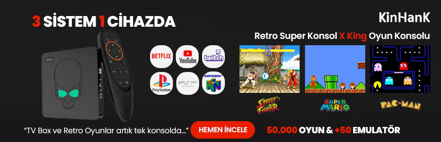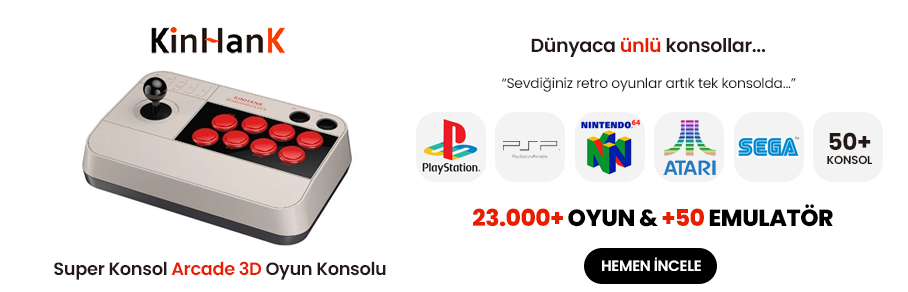 Kinhank Super Konsol ARCADE 3D JOYSTCİK 64GB 13000+ OYUN 50+ OYUN KONSOLU PS3 VE PS4 UYUMLU PSP/PS1/SNES/NES/N64/DC/NEO G