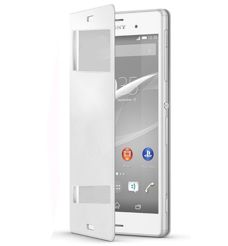 Sony Xperia Z3 Dikişli Yan Kapaklı TPU Kılıf Beyaz